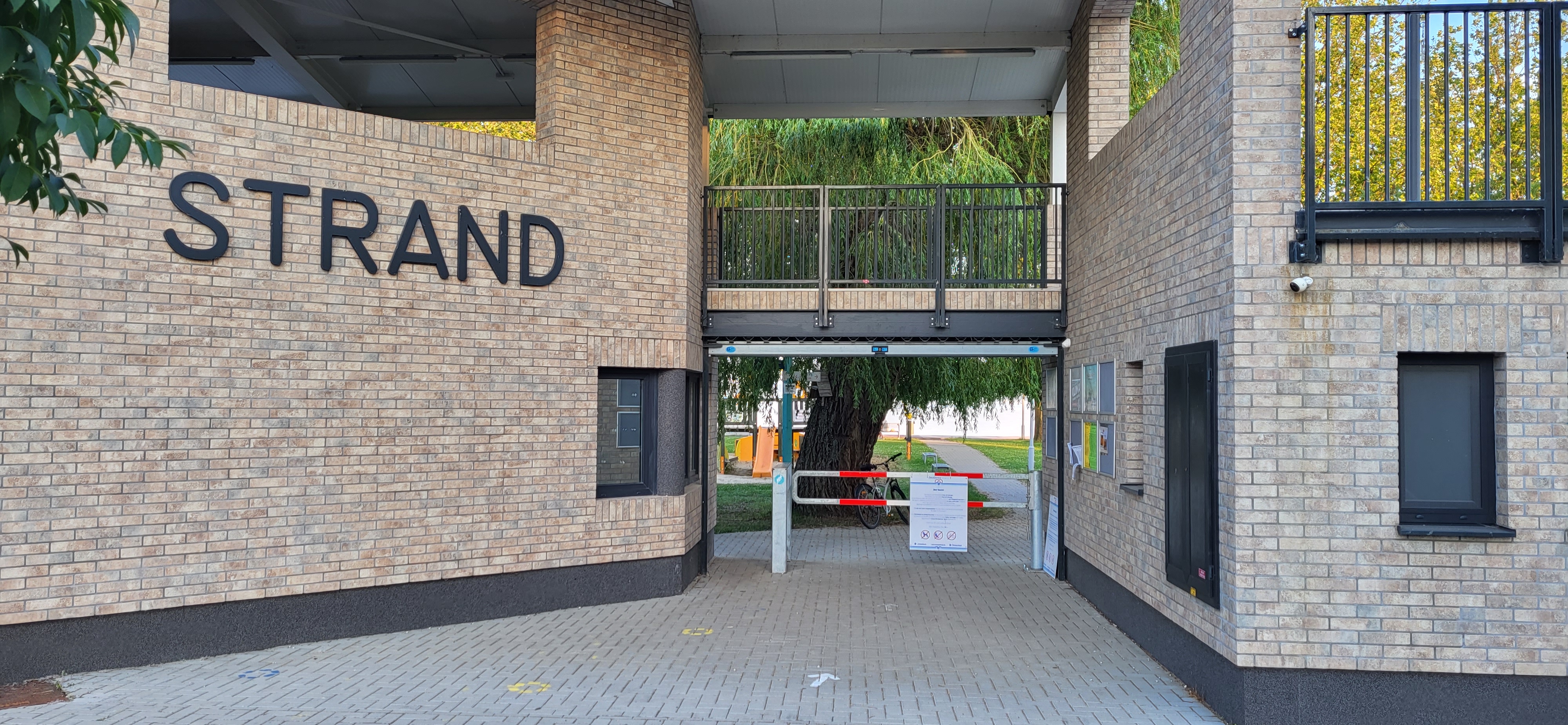 Saját INGYENES stranddal és hozzátartozó parkolóval rendelkezik. Az egész strand területe, öltözőkkel, büfével 2020-21-ben teljeskörűen fel lett újítva. A strand területe nagyon gyerekbarát, mivel nagyrészt hatalmas fák árnyékolják be. Érdekesség, a strand területét műanyag úszókkal bővítették. Csónak, SUP bérlés lehetséges.