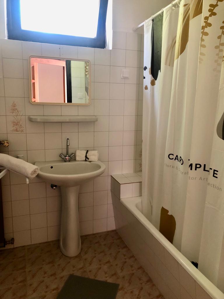 25 m2 | Legfeljebb 4 fő elszállásolására alkalmas | 1 kétszemélyes franciaágy | 1 egy személyes ágy + pótágy | 1 saját fürdőszoba + WC | Utcára néző ablak, redőnnyel ellátva | Hűtő-fűtő klíma (ingyenes) | Közösségi térben teakonyha használata | Földszinten gépesített konyha, mosókonyha használata